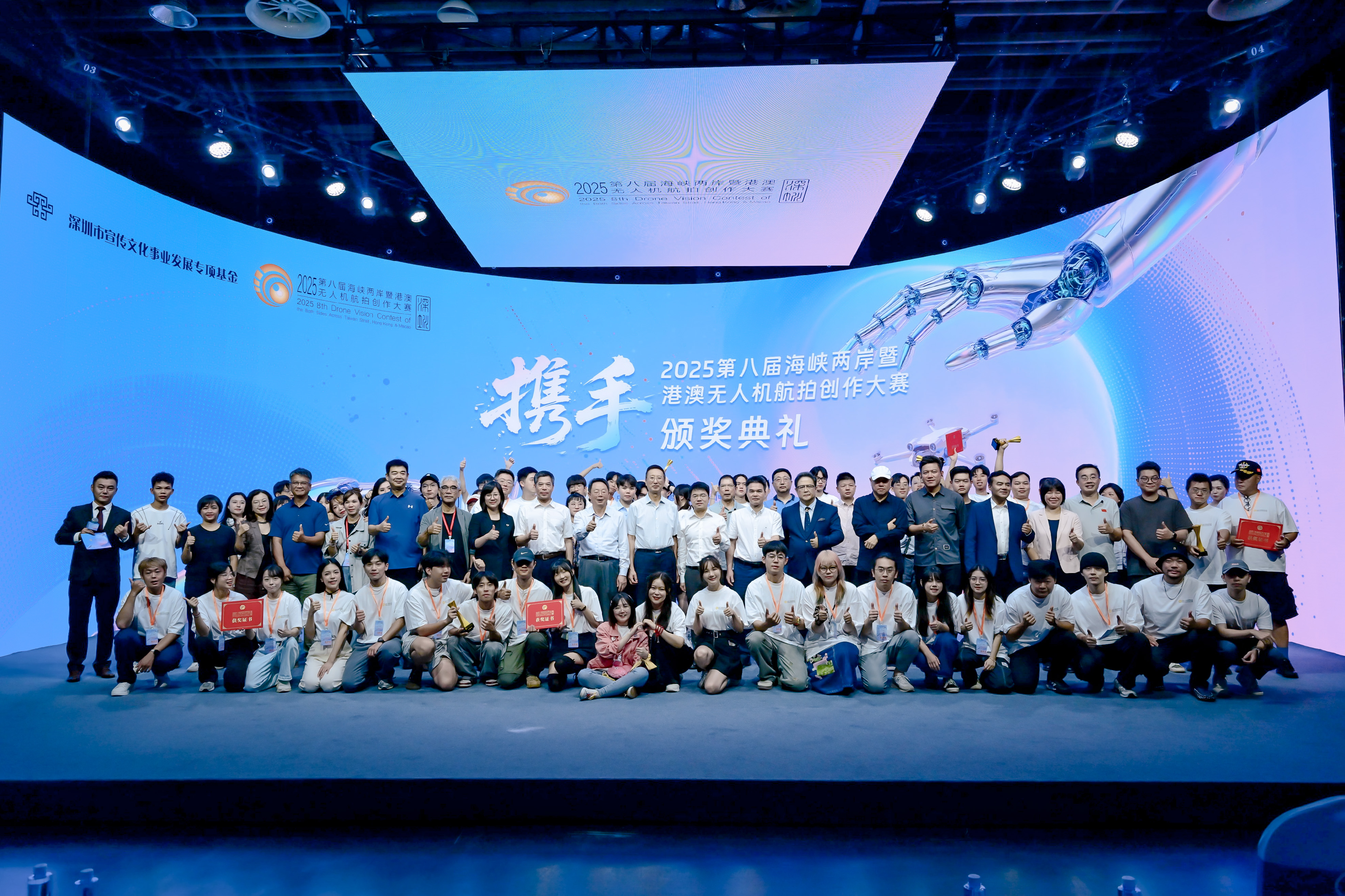 以云端视角俯瞰世界,携手共创美好未来。8月27日,2025第八届海峡两岸暨港澳无人机航拍创作大赛颁奖仪式在深圳龙岗·粤港澳超高清数创产业园圆满收官,各奖项顺利揭晓。